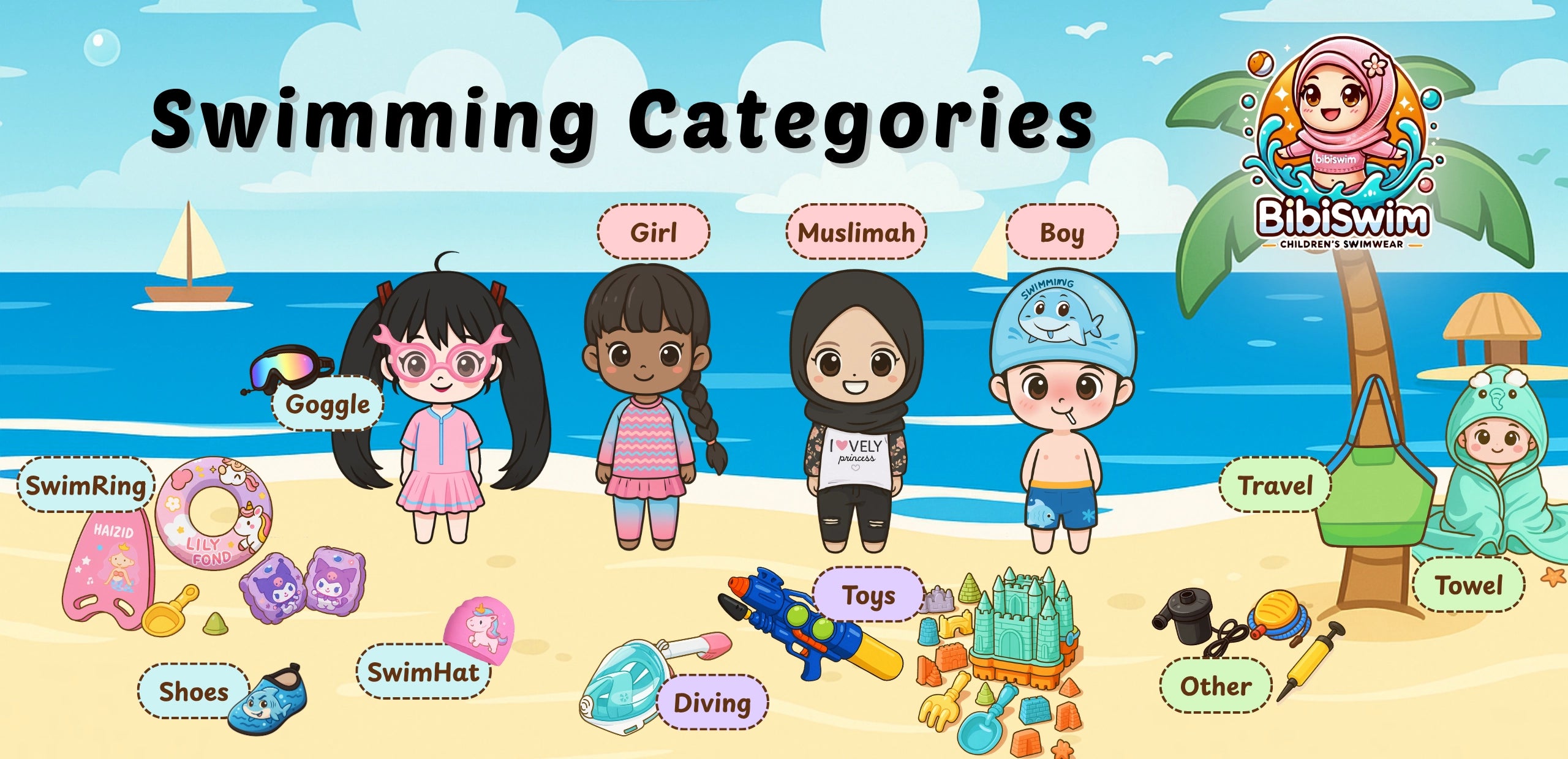 RMSale price RM26.80Mermaid Swimming Suit Kids Girl 2 Piece Swimsuit Muslimah Swimwear | Baju Renang Budak Perempuan
