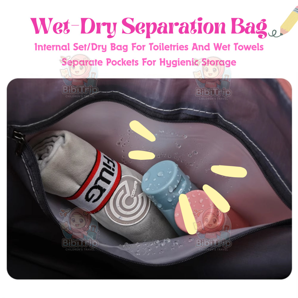 ✔️ Wet & Dry Separation: Comes with a special compartment to separate wet items like swimsuits or towels. Stay clean and organized.